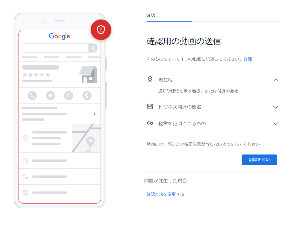 ※ちなみにビデオ通話確認の方法に関してはかなり面倒です、その施設のオーナーである可能性が低い場合にのみこの方法がGoogle によって提示されます。