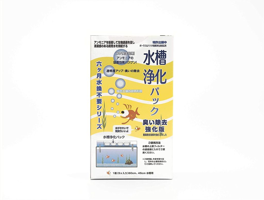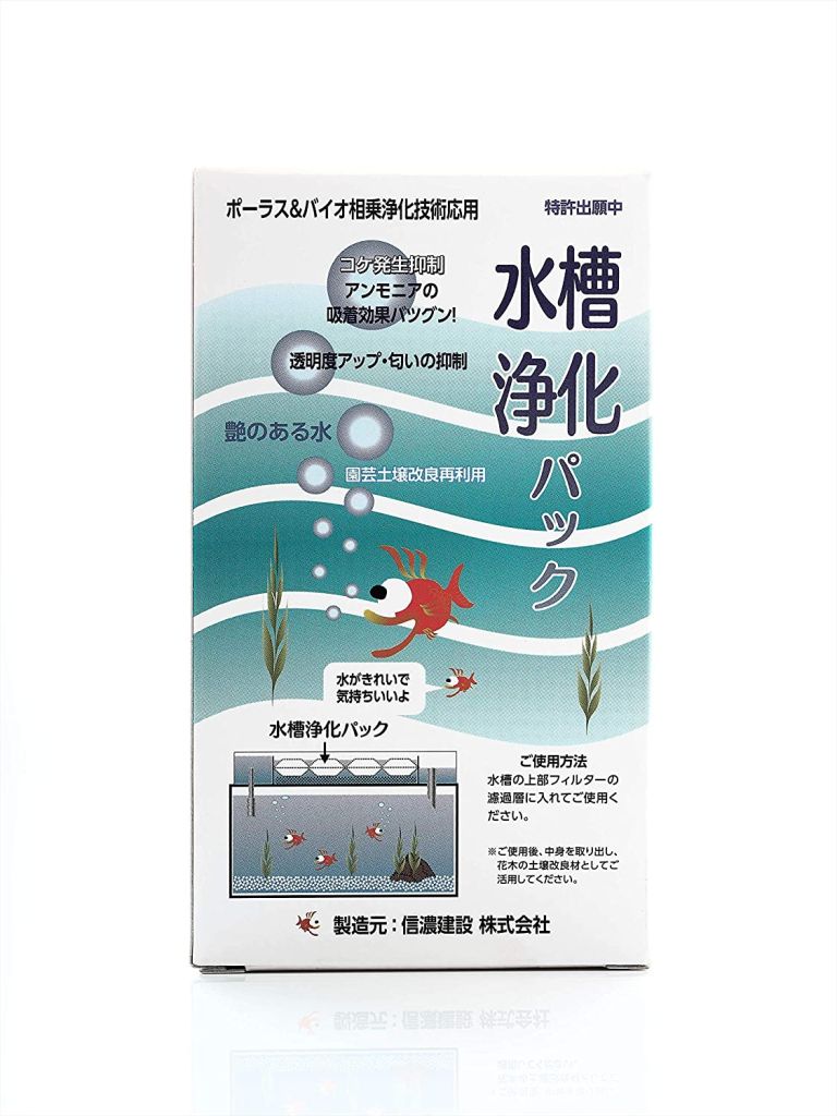 株式会社信濃建設の開発する水槽水質改善剤の水槽浄化パックのパッケージデザインをさせていただきました。