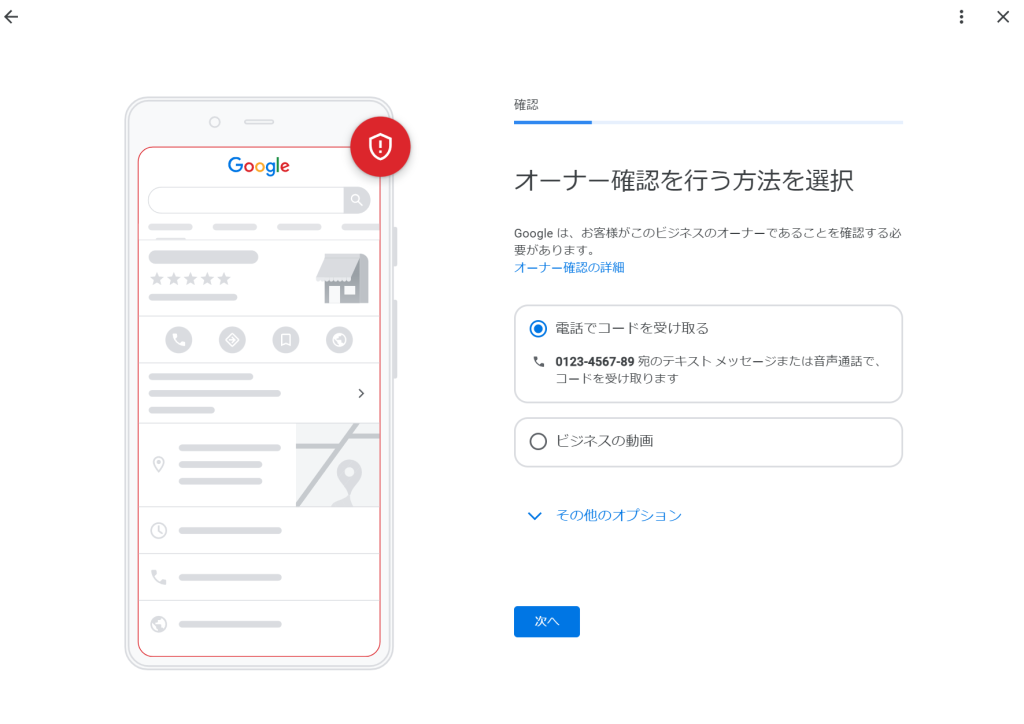 3:電話番号の変更後、施設情報を検索し、「このビジネスのオーナーですか?」というオプションをクリックします。すると、オーナー確認のための認証方法が表示され、先に変更した電話番号で認証が可能になります。この電話番号が自分のものであれば、実際には運営していない店舗や施設をGoogleマップ上で管理することができるようになります。注意点として電話番号を変更した後にすぐにオーナー確認をしようとするとうまくいかない場合があります。