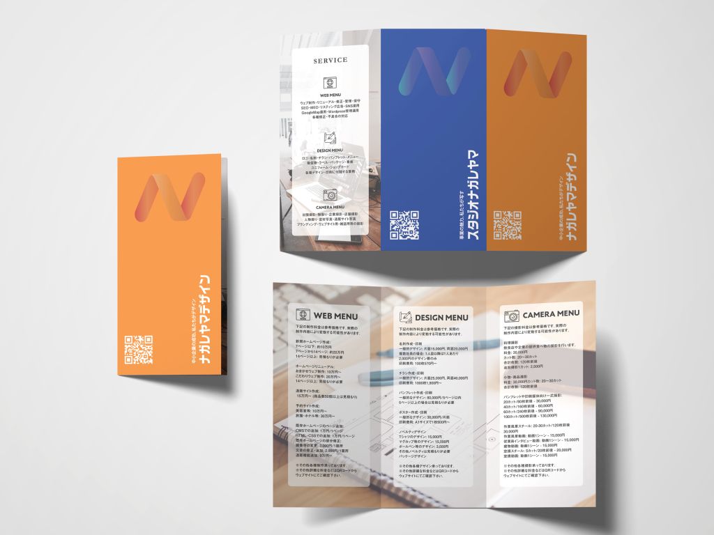 A4三つ折りのパンフレットサンプル(ナガレヤマデザイン用)